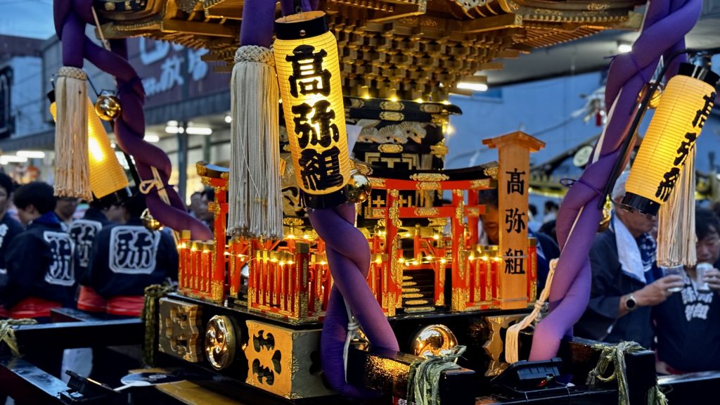 今年のタカヤ神輿は、本体をLEDライトでライトアップし、夜空の下で一層の存在感を放ちました。